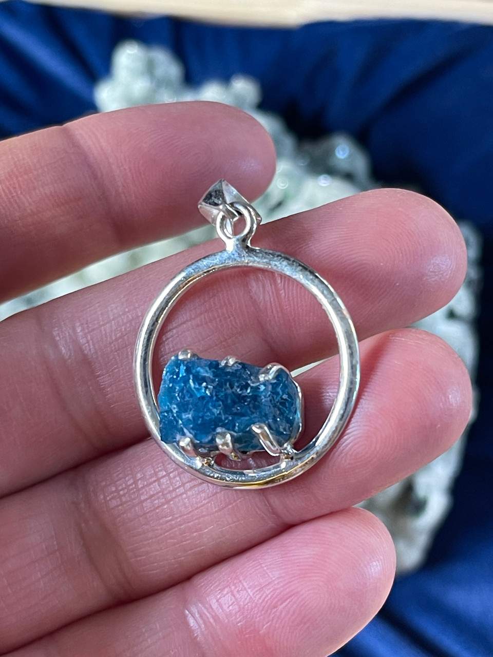 A beautiful raw piece of Blue Apatite set in silver - measures 1.5" x 1"