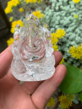 Subhamoy Das writes that 'the son of Shiva and Parvati, Ganesha has an elephantine countenance with a curved trunk and big ears, and a huge pot-bellied body of a human being. He is the Lord of success and destroyer of evils and obstacles. He is also worshipped as the god of education, knowledge, wisdom and wealth. In fact, Ganesha is one of the five prime Hindu deities, Brahma, Vishnu, Shiva and Durga being the other four. Ganesha's head symbolizes the Atman or the soul, which is the ultimate supreme reality of human existence, and his human body signifies Maya or the earthly existence of human beings. The elephant head denotes wisdom and its trunk represents Om, the sound symbol of cosmic reality. In his upper right hand Ganesha holds a goad, which helps him propel mankind forward on the eternal path and remove obstacles from the way. The noose in Ganesha's left hand is a gentle implement to capture all difficulties.' Connect to the energy of Ganesh by placing this beautifully carved quartz statuette in your space.