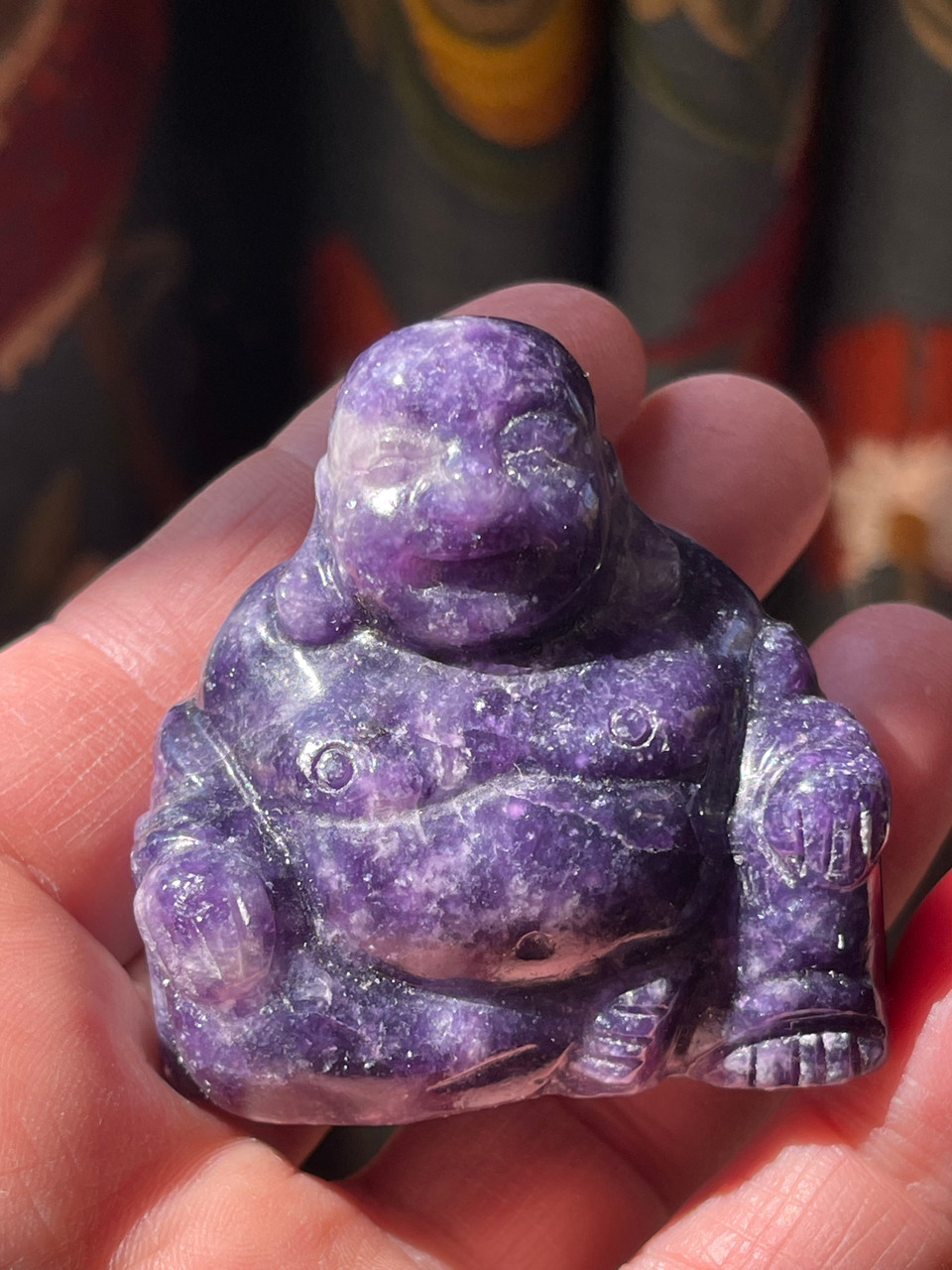 A beautiful Lepidolite Ho Min Buddha measuring 2" x 2"