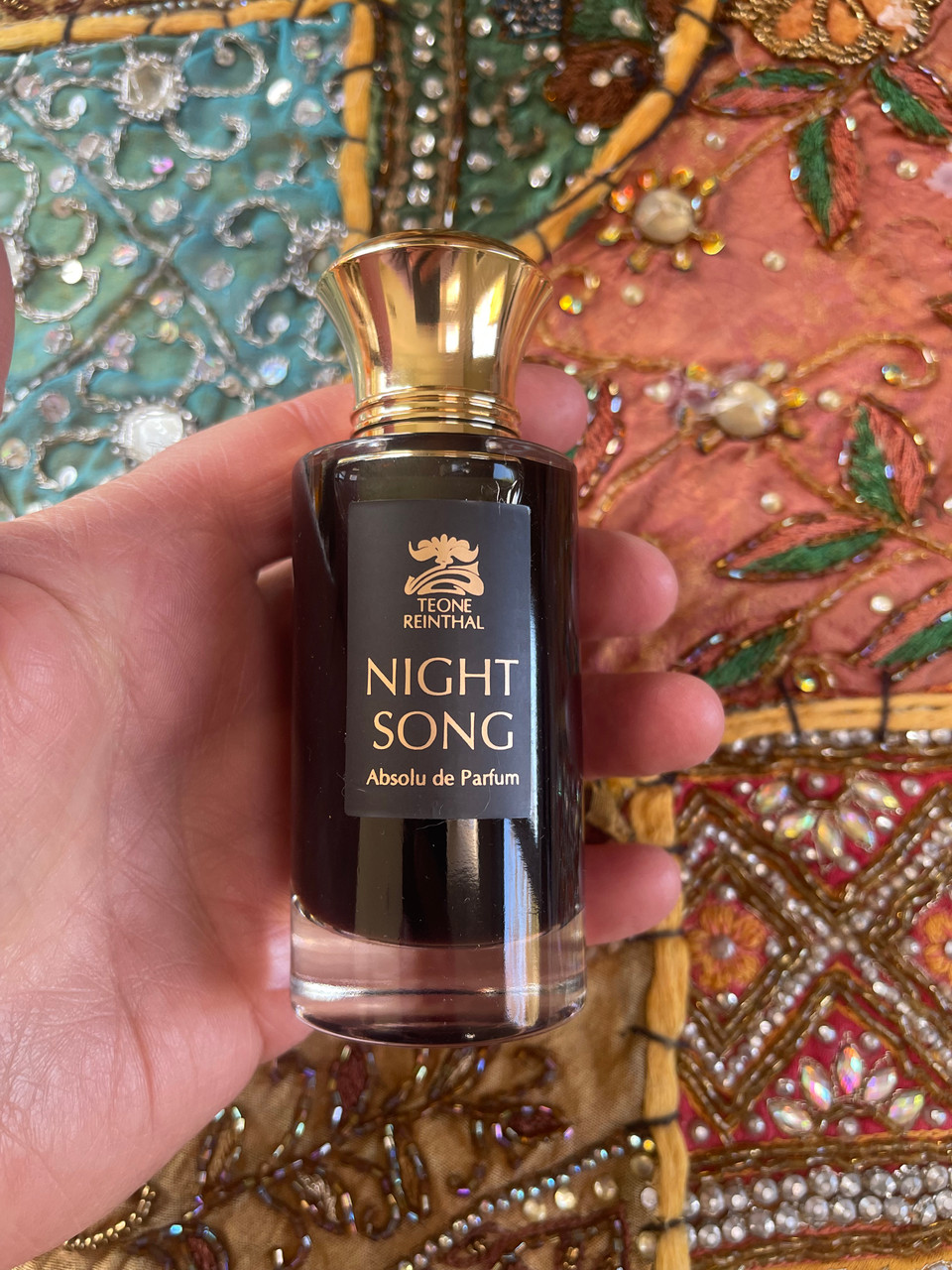 I recently found a hidden stash of my original, undiluted Night Song formula from 2016. After diluting it in ethanol, I found that the top notes had softened, and needed a little help, so I’ve added a boost of aged Sumatran patchouli to refresh it. The punch is back and the dry-down is gorgeous, and it will continue to mature and gain potency over the years.