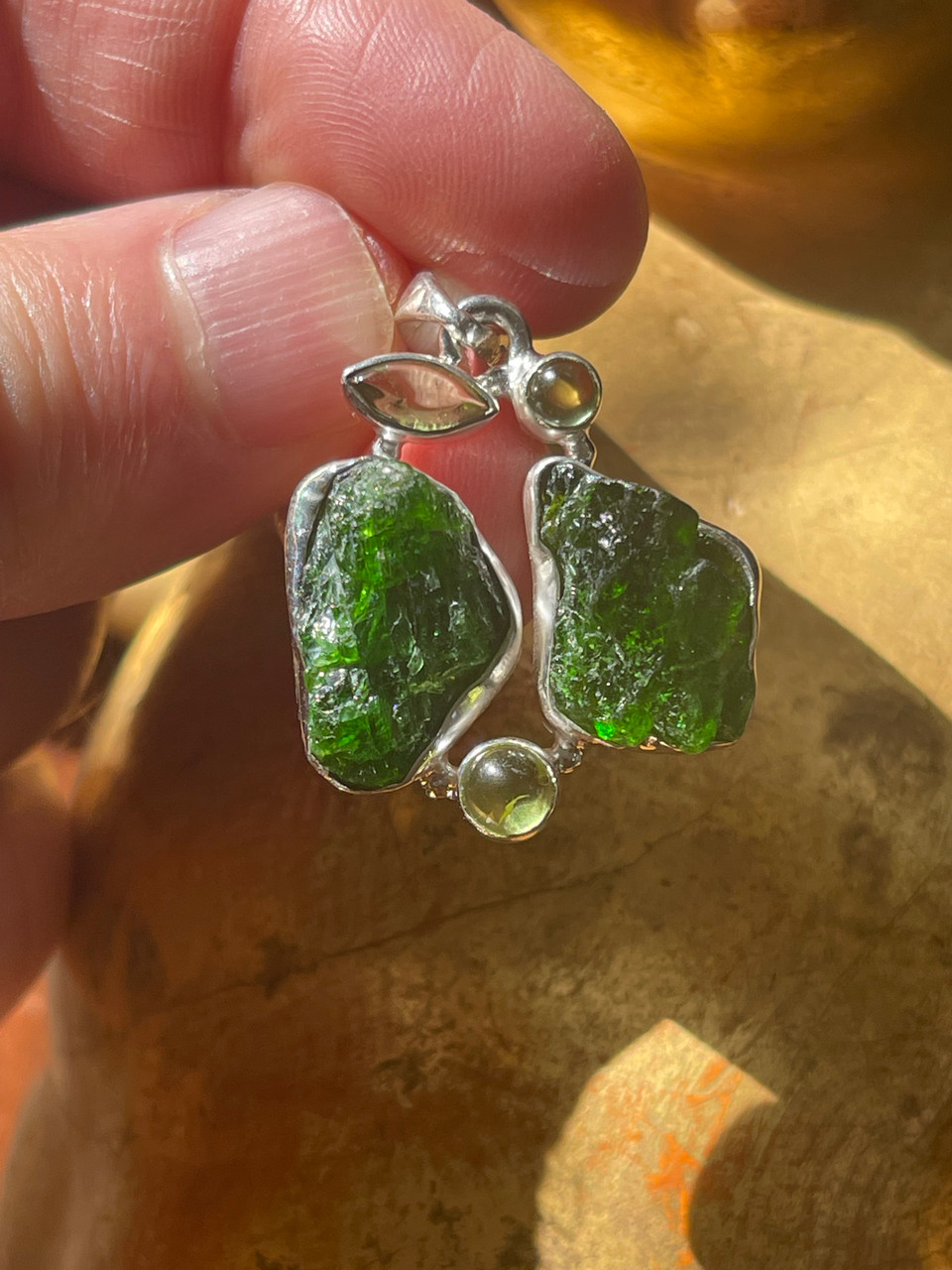 This wonderful gem is a variety of olivine that was once called the evening emerald, as it shone more brightly in the lamplight of dusk. A beautiful crystal ally to work with, opening the heart chakra and initiating fluidity, breaking through inertia.