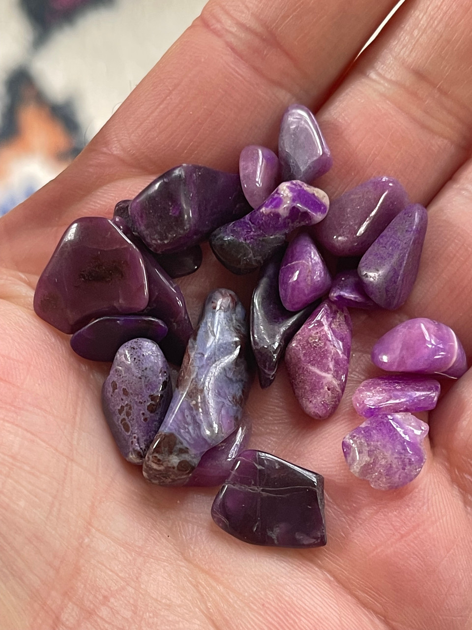 Sugilite is a fairly young stone, discovered in 1944 by Japanese geologist Kenichi Sugi, whose name was adopted. It is a powerful Third eye activator that works on the pineal gland, the top of the head, the crown and the heart chakra. Can be used when working with Indigo Children and Star Children, and it holds a mothering, nurturing quality that is gentle yet powerfully effective. Is especially useful for those who feel they don't belong on Earth or can’t fit in. The message of Sugilite is "stay vast and let the world fit into you"