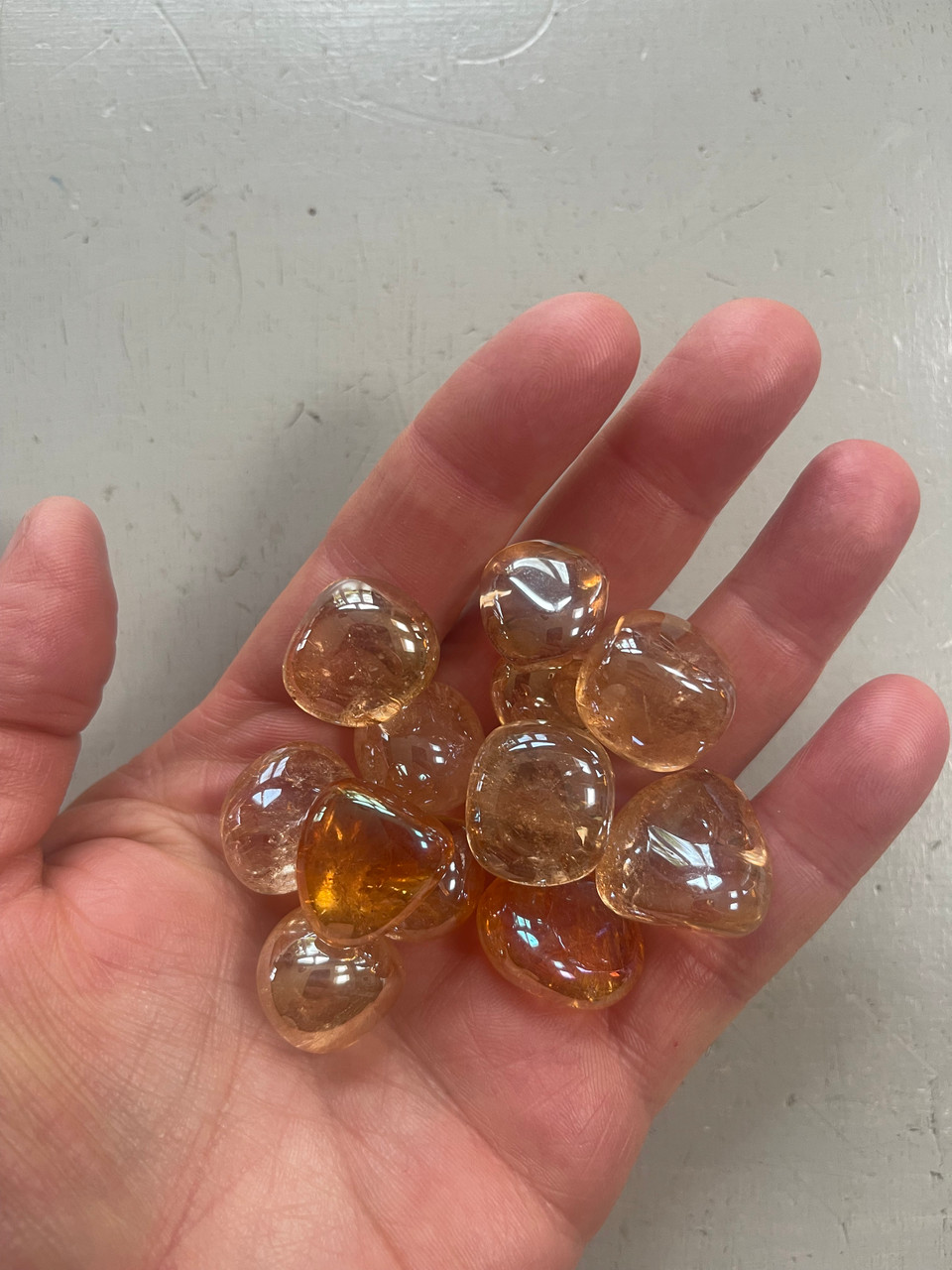 Tangerine Aura tumblestones - each piece measures approx 1". These are the real deal; they are not just coated copies. These have been properly fused.